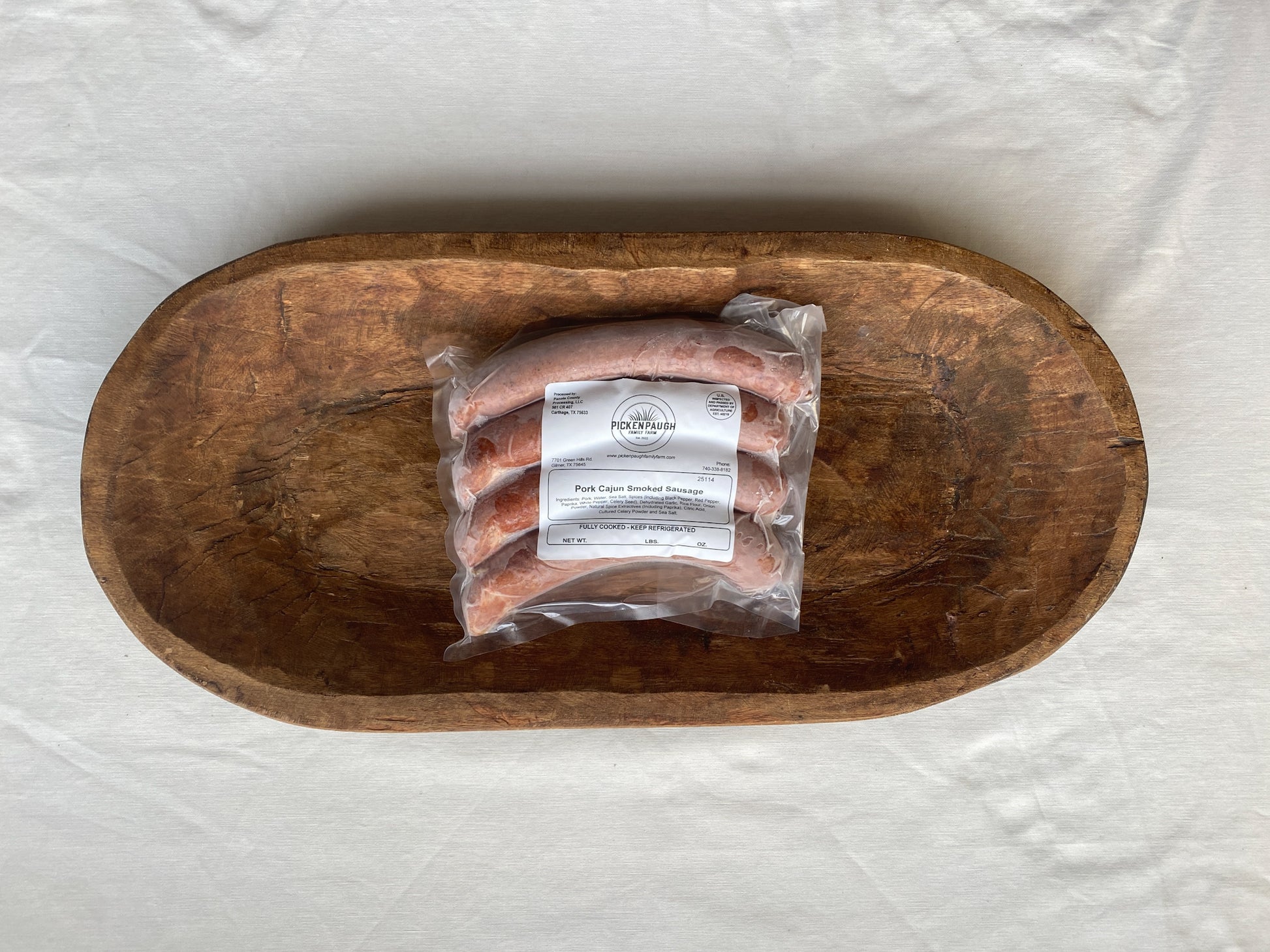 Package of Pork Cajun Smoked Sausage - use in your favorite tex-cajun dishes or on its own!